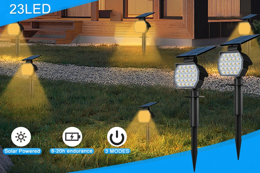 - [P65 Waterproof and Durable] These outdoor solar spotlights are made of durable and high-strength ABS material, which can survive even in rainy days. At the same time, it can also adapt to various extreme weather conditions and prolong its service life.